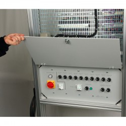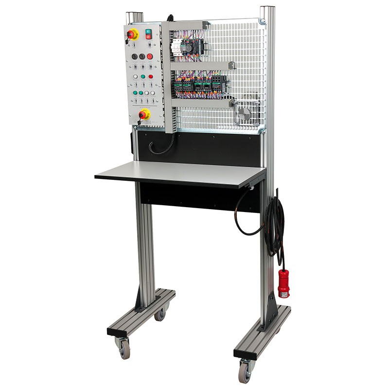 ESSAI-DIAG is a model that allows troubleshooting at different points on a wiring grid. The wiring on the grid represents the Star/Delta starting of an asynchronous machine with two rotation directions. The ESSAI-DIAG2 version is a complete system, consisting of a control section and a power section with 3 x 24 VAC, controlling a three-phase asynchronous motor. Troubleshooting is performed on the entire circuit. On the ESSAI-DIAG version, only the control circuit is wired and allows troubleshooting.