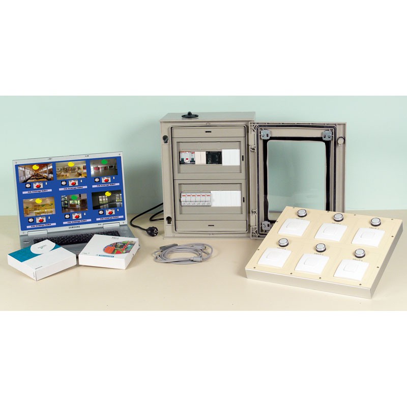 This model is a room lighting unit comprising an electrical cabinet and a console fitted with low-voltage spotlights. Using a TCP/IP PLC and monitoring software, it is possible to control the model and view its operation on a computer.
